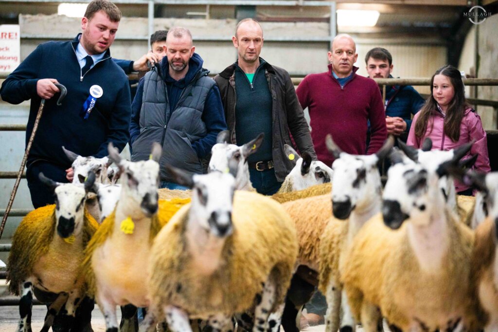 With some strong classes forward Adam found his champion in the ram lamb pen of Robbie Topping, Rocklynn, this was a homebred lamb 5224/V009. This cocky lamb caught the attention of the Judge as soon as he entered the show ring. This lamb is filled with crossing blood sired by Drummuck 4367/T001 out of a Temain bred ewe 4342/N035 going back to Cottage and Yore House breeding in the grand sire lines, Michelle Wright, Mullaghwee was the lucky lady at the fall of the gavel taking this lamb home in a half share with William Adams, Holmview paying 1420gns.