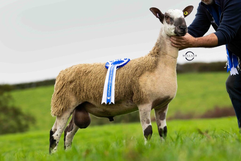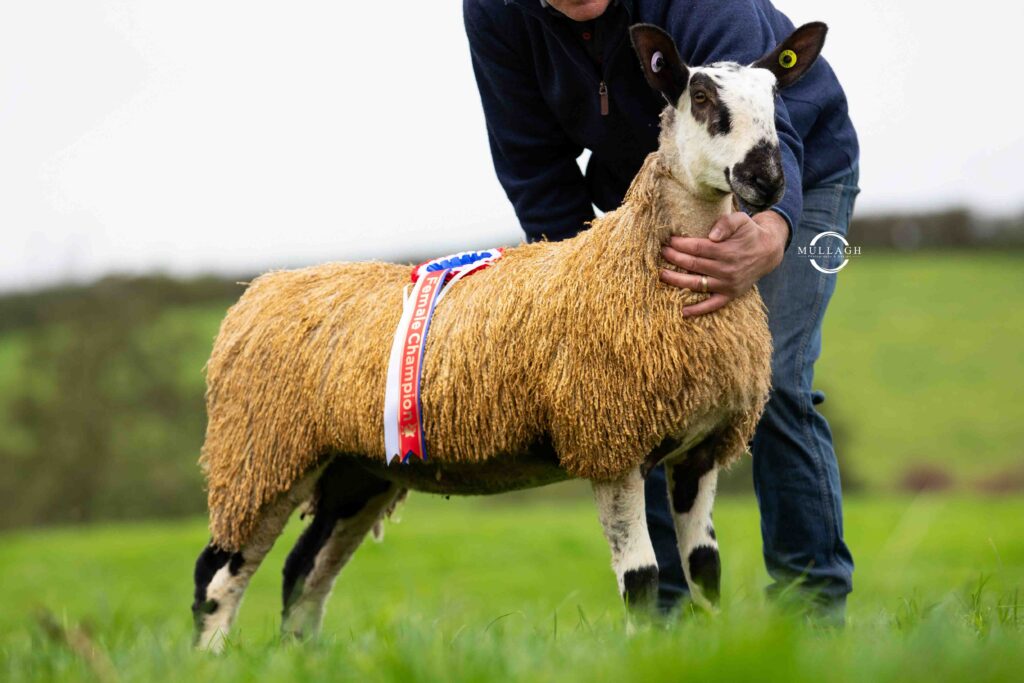 Female champion was awarded to Elaine & Sam McGarel, Hickeys Brae with a home bred ewe lamb sired by Tievebuaile Farm 3920/T004 out of a homebred ewe 4297/P014 she was sold for 370gns.