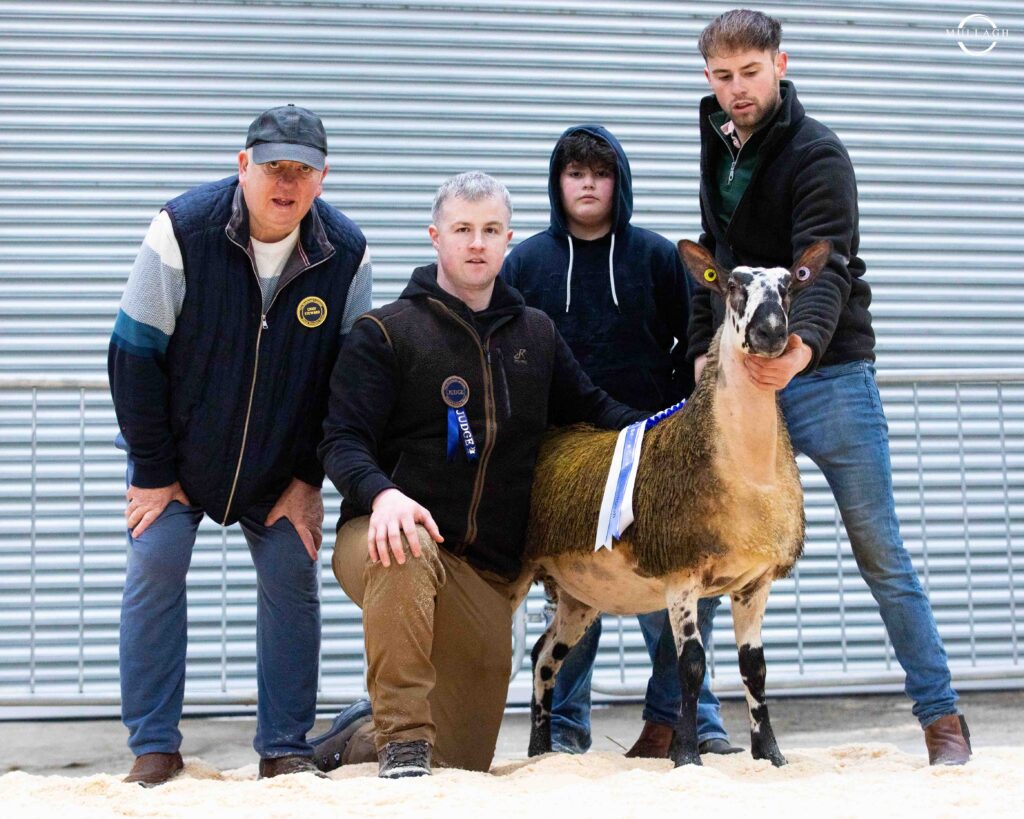 Reserve Champion was also in the ewe hogg class and taking the blue ticket were Jimmy & Jason Mills, Ballytober with their homebred 2nd prize ewe hogg Ballytober 4469/V016 she is sired by Mistyburn 4691/T002 out of a homebred ewe Ballytober 4469/P015 she was cashed at 1,000gns finding her way across the Irish sea to join the Macherquhat Flock of Robert Wallace.