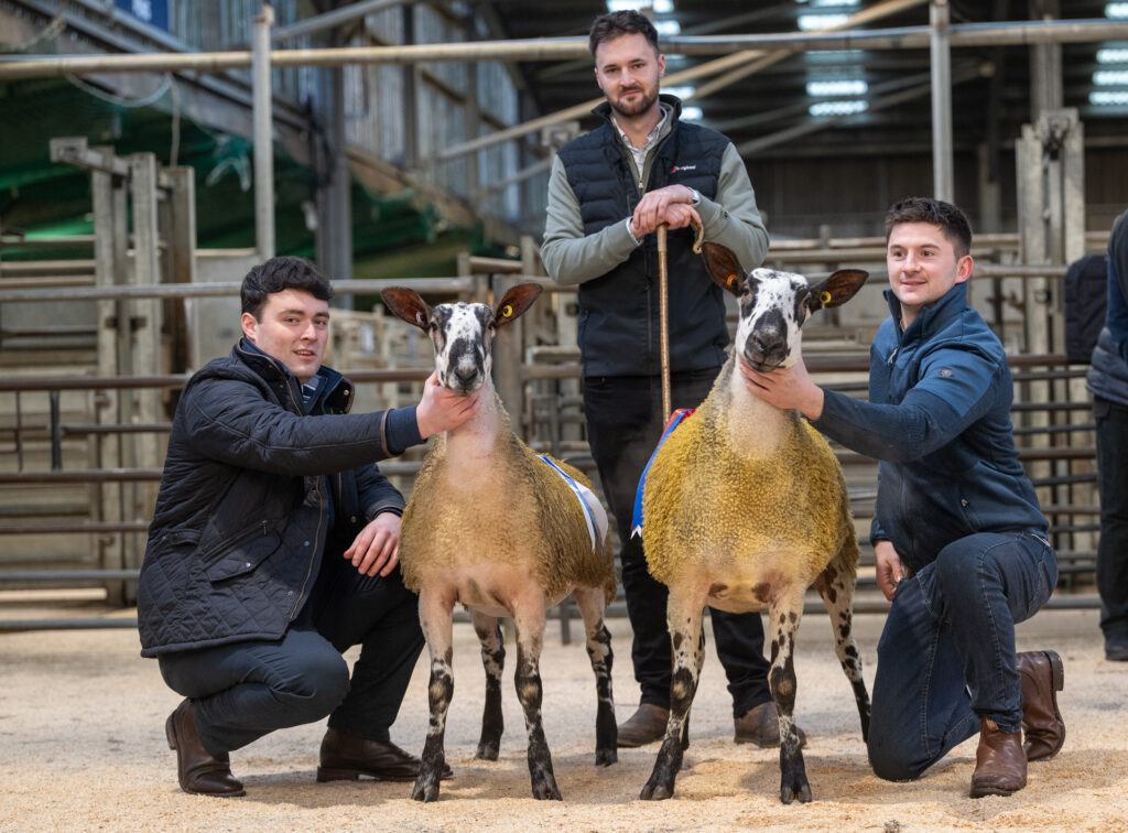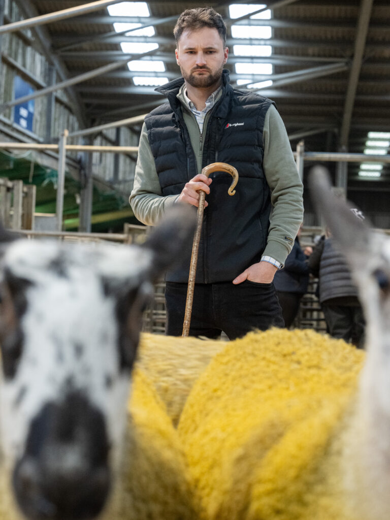 Topping the trade was a young, sharp gimmer hogg from the Macqueston flock, full of style and breeding, along with a great skin and presence. She was the winner in the gimmer hogg class and placed Reserve Overall Champion by the judge, Robbie Hallam from High Birkwith. She was by the S6 Carryhouse, which has done well for them on the mules and the pures. Her mother is by the L18 Midlock and goes back to the old F8 Macqueston, the best breeding lines within their flock. Anders Brown, the star in the box, knocked her down at 3800gns to Messrs Luck, Barnard Castle.