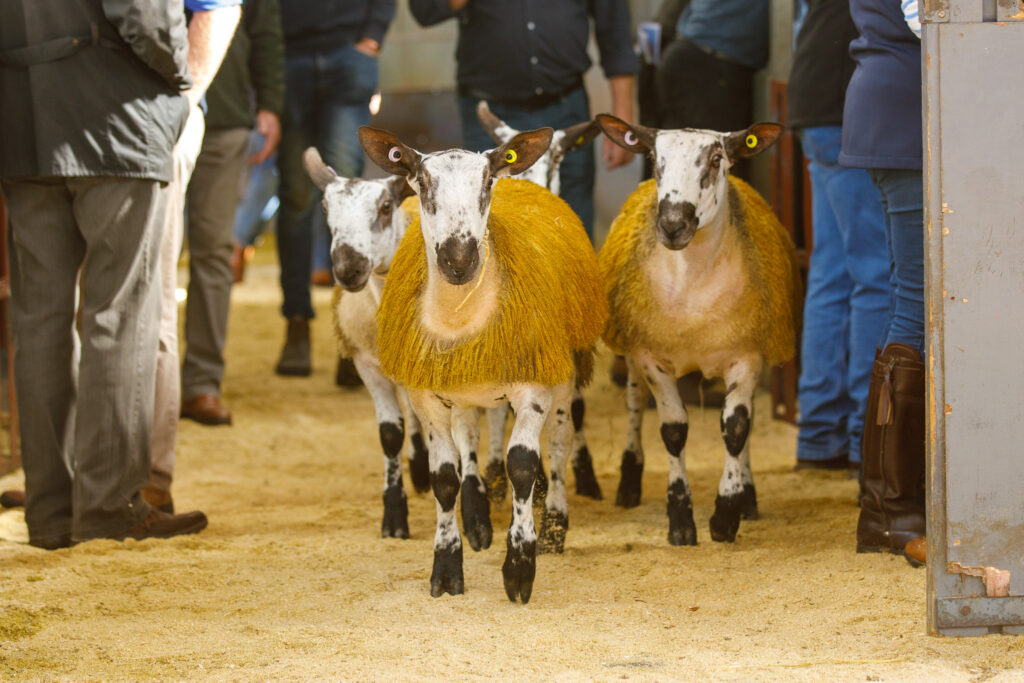 W Lockhart, Culdoach brought out a small but strong pen of shearlings, first in was homebred 4265/T002 by the homebred ram 4265/S001 out of homebred ewe 4265/R020 he was cashed for £2600 – the three shearlings averaged £1733
