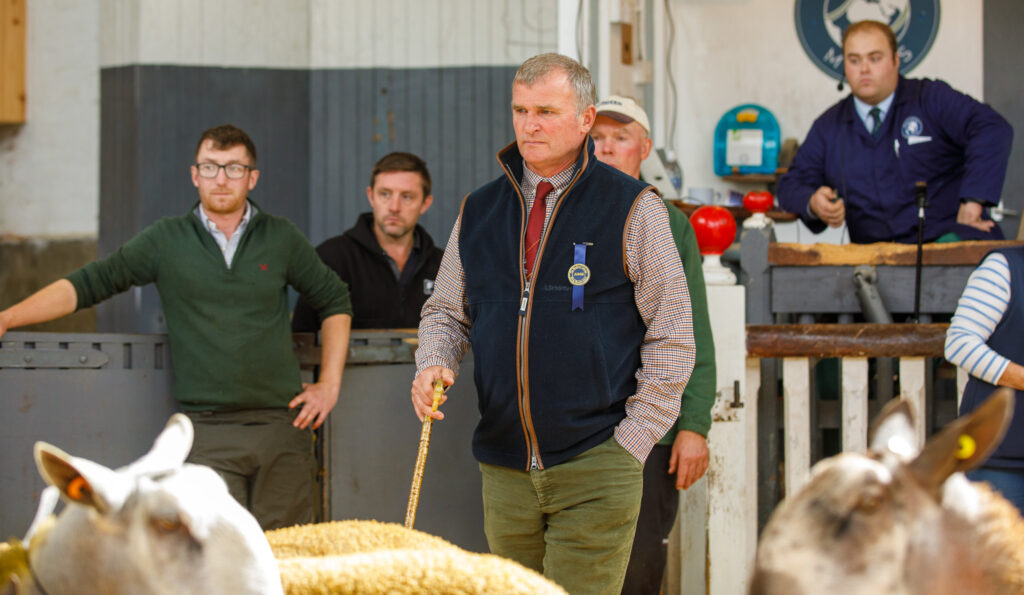 This was with their homebred shearling ram 3768/T002 who caught the Judges eye the minute he entered the ring, he is sired by 980/S002 Hewgill out of a homebred ewe 3768/P015 Laggan Park. The Judge stuck by his choice and took him home for £2000. Laggan Park’s pen of 7 shearlings sold to an average of £1371.43