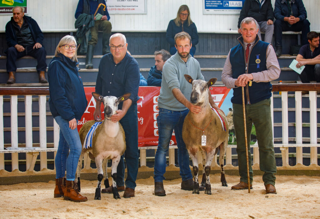 Reserve champion was the first prize ram lamb, a sharp homebred lamb brought out by Andrew McQuistin, Barnshangan 2884/V010 sired by 1538/G034 Midlock out of a homebred ewe Barnshangan 2884/L021, he was cashed for the top price of the day £3500 heading home to Ardoch Farm, Castle Douglas. The second prize ram lamb also came from the Barnshangan pen this was 2884/V012 sired by Blarnavaid 4244/S019 and out of homebred ewe 2884/N021 he sold for £1600 joining the Macqueston flock of Alec & Anders Brown.