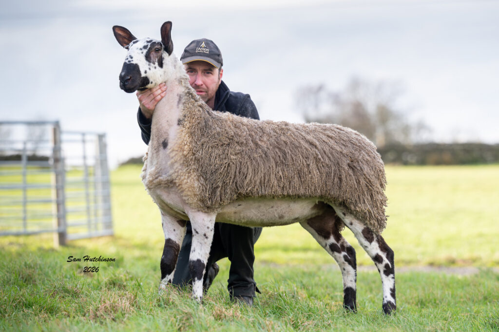 The Champion from the pre-sale show was a substitute gimmer shearling 1538/T152 from the Midlock consignment. This strong sheep is by the Shitlington R6 and carrying twins to the £28,000 Cottage. She was taken home by local breeder Alice Amsden who shelled out £8000 for her. Trade was strong throughout the Midlock pen, with another bid of £3200 for T96, carrying twins to M1 Riddings, with a couple more fetching over £2000.
