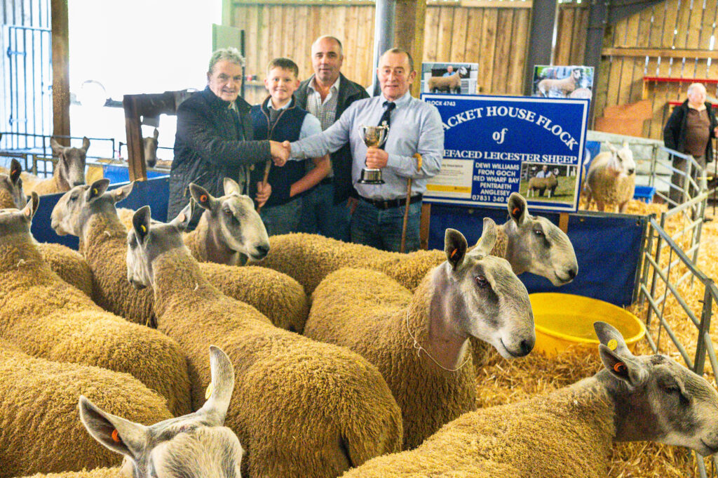 The Champion in the Traditional ring, judged by Derek Henderson, went to a shearling from John and Llinos Griffiths of the Tyhir flock. This smart tup, which had stood second at the Royal Welsh Show earlier in the summer, is by the P2 Mendick, which has done well for them. He sold to Brain Baker of the Olives flock for 5800gns.