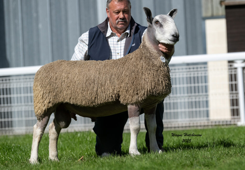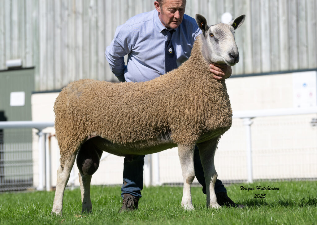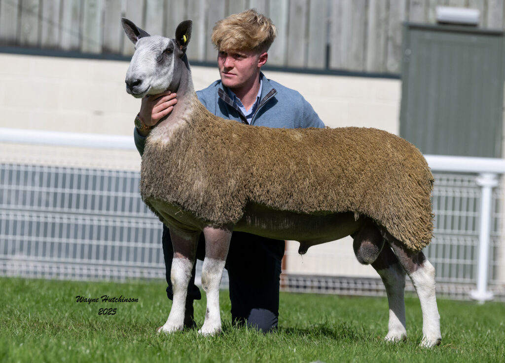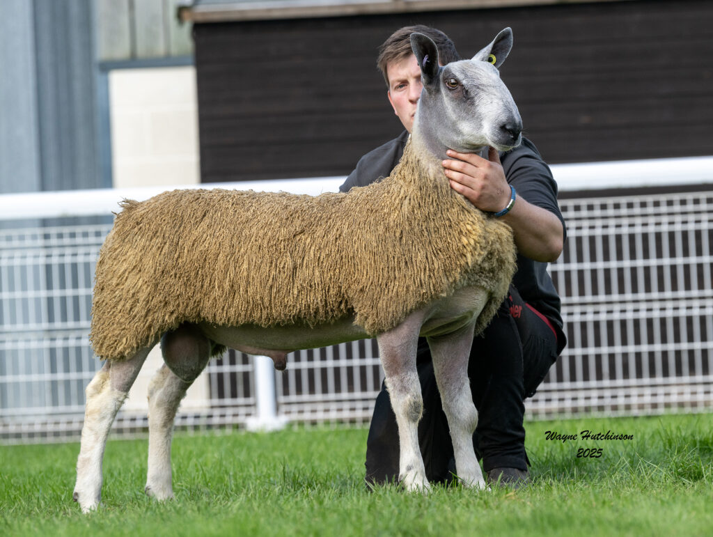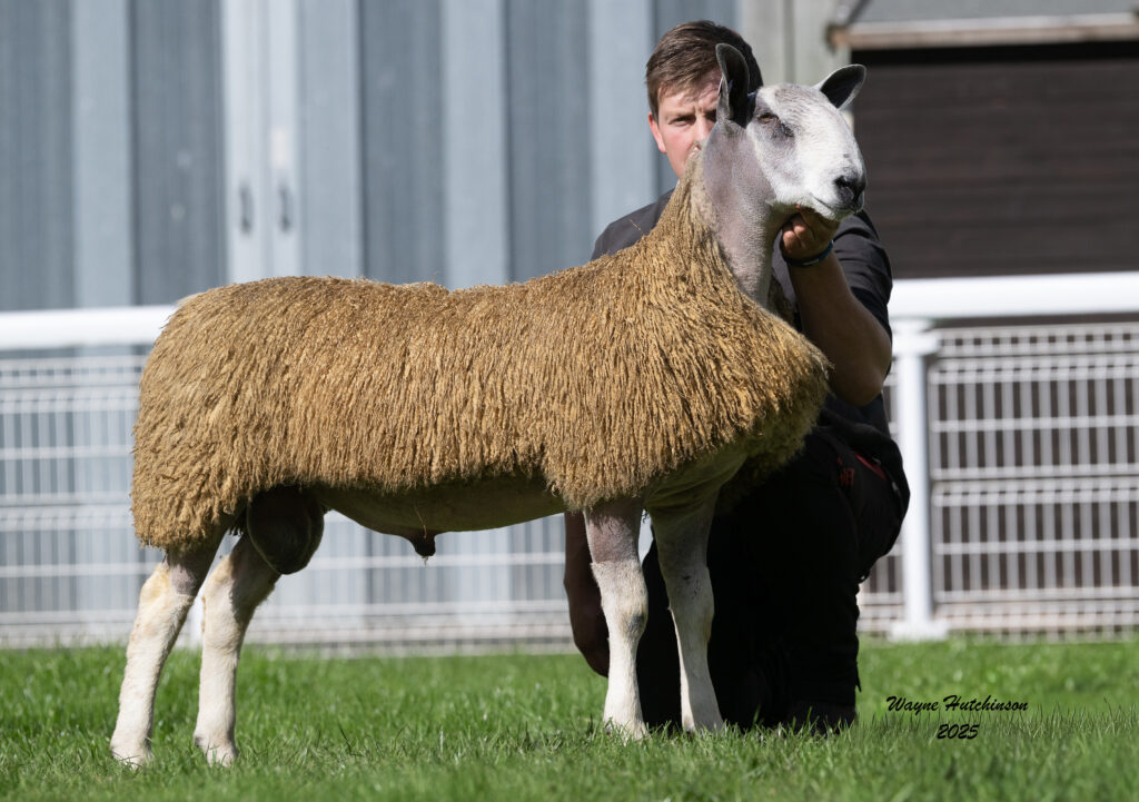 This year saw classes split into traditional and Crossing classes for the first time, and Peter Heard was up from Devon to cast his eye over them. Taking the champion ticket was a smart tup lamb from Owen Jones with Underwood V15. He is a son of the £9000 P16 Marriforth, which has done well for them, helping their mules to a top of £300 and average £214 for 180 lambs at the breeding sales. He sold for 1100gns to The Simpson Family, Woodseat Blues
