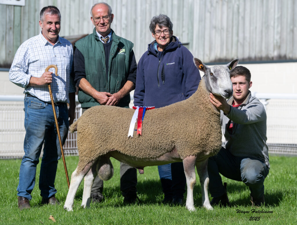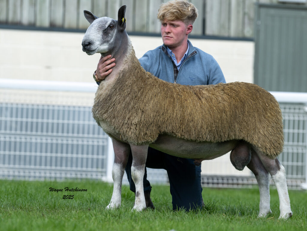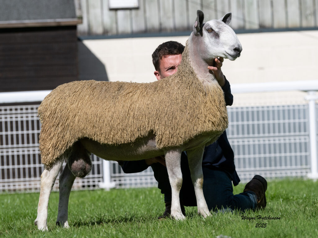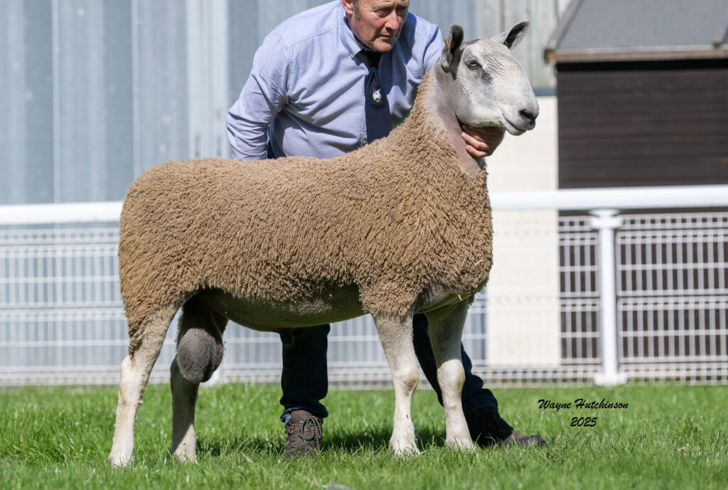 This year saw classes split into traditional and Crossing classes for the first time, and Peter Heard was up from Devon to cast his eye over them. Taking the champion ticket was a smart tup lamb from Owen Jones with Underwood V15. He is a son of the £9000 P16 Marriforth, which has done well for them, helping their mules to a top of £300 and average £214 for 180 lambs at the breeding sales. He sold for 1100gns to The Simpson Family, Woodseat Blues
